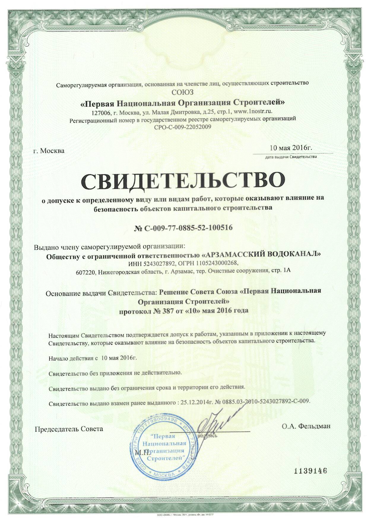 Общество с ограниченной ответственностью "АРЗАМАССКИЙ ВОДОКАНАЛ"
